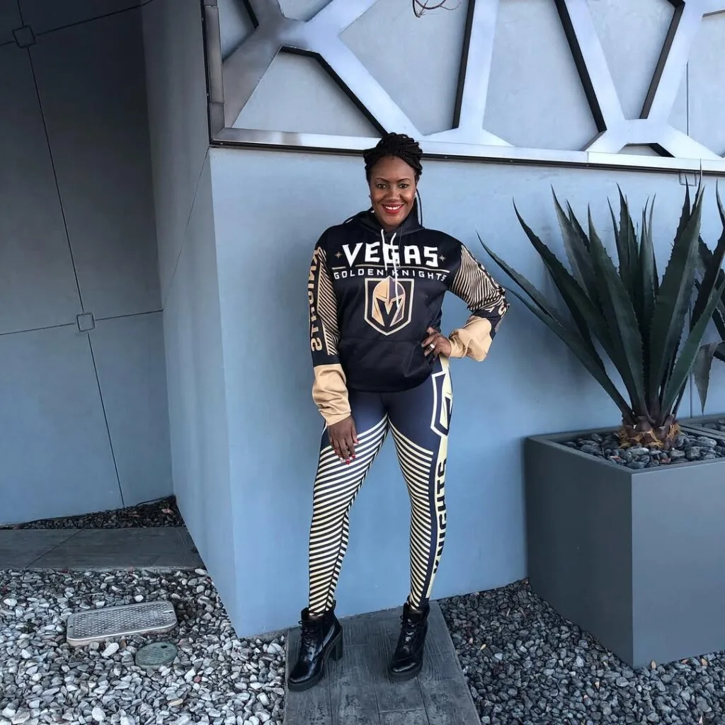 For a sporty-chic look, layer a puffer vest over a hoodie and pair it with relaxed-fit sweatpants. This outfit keeps you warm and stylish, making it perfect for colder hockey arenas.