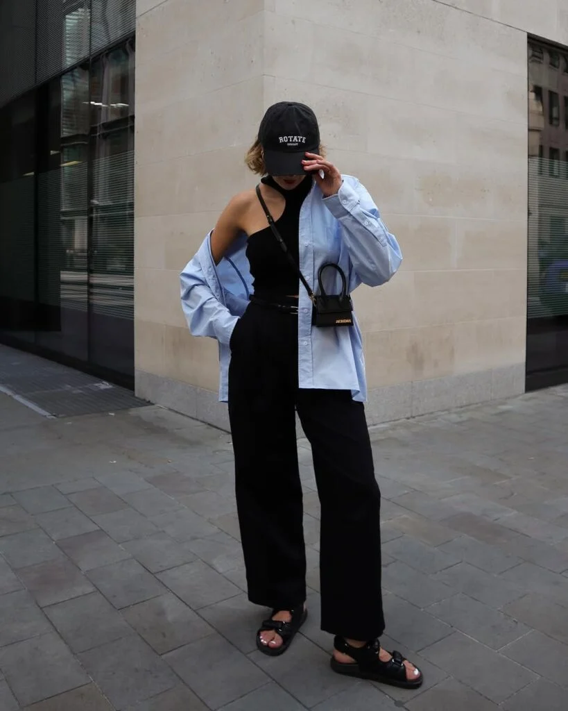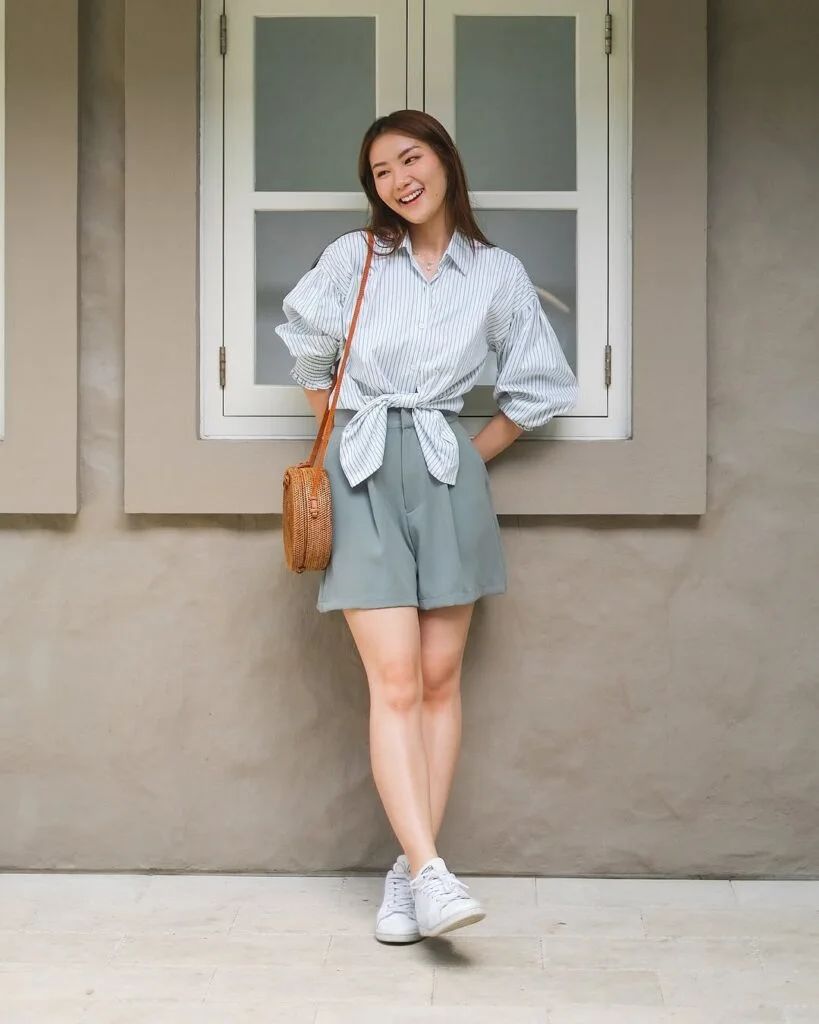 For an effortlessly cool and trendy look, pair an oversized button-down or T-shirt with fitted biker shorts. This outfit balances proportions, keeping your silhouette sleek while maintaining a laid-back aesthetic. Add chunky sneakers and a crossbody bag for an athleisure-inspired vibe.