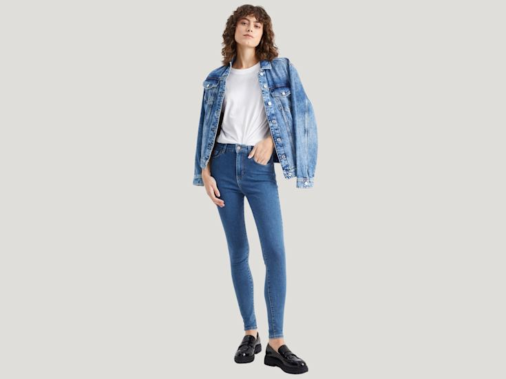 This outfit is a perfect example of how to add dimension and shape to a straight (rectangle) figure. The fitted skinny jeans create a streamlined base, while the slightly oversized denim jacket introduces structure and visual balance to the upper body. The tucked-in white tee defines the waist without clinging, helping create the illusion of more curves. Finished with black loafers for a clean, modern touch, this look is effortless, flattering, and ideal for everyday wear.