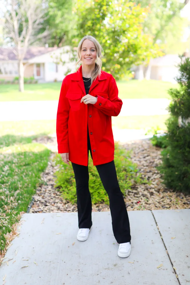 A polished yet comfortable outfit perfect for office settings or professional events. Pair flare leggings with a tailored blazer and a fitted blouse for a refined look. Polished loafers ensure both comfort and professionalism.